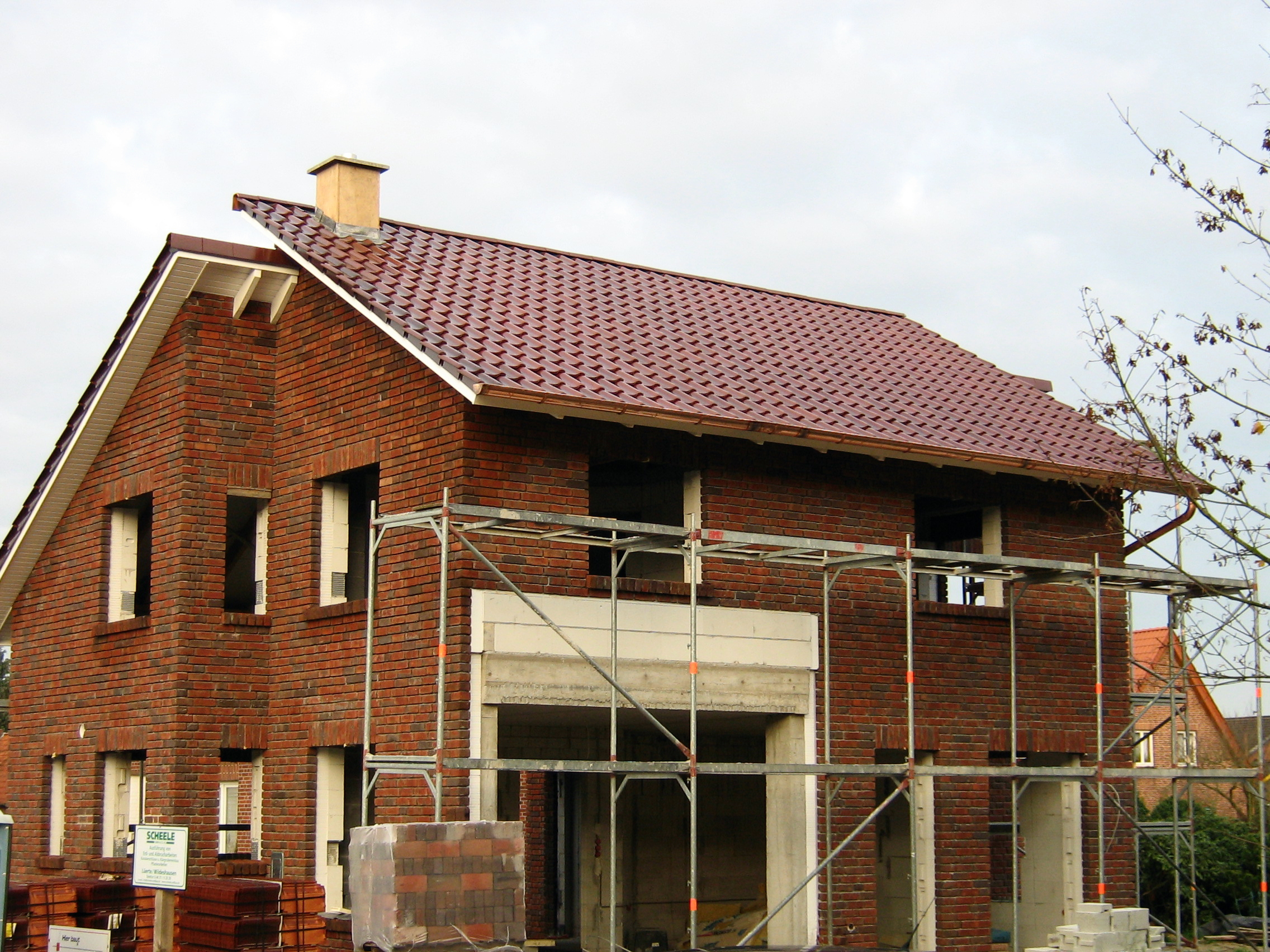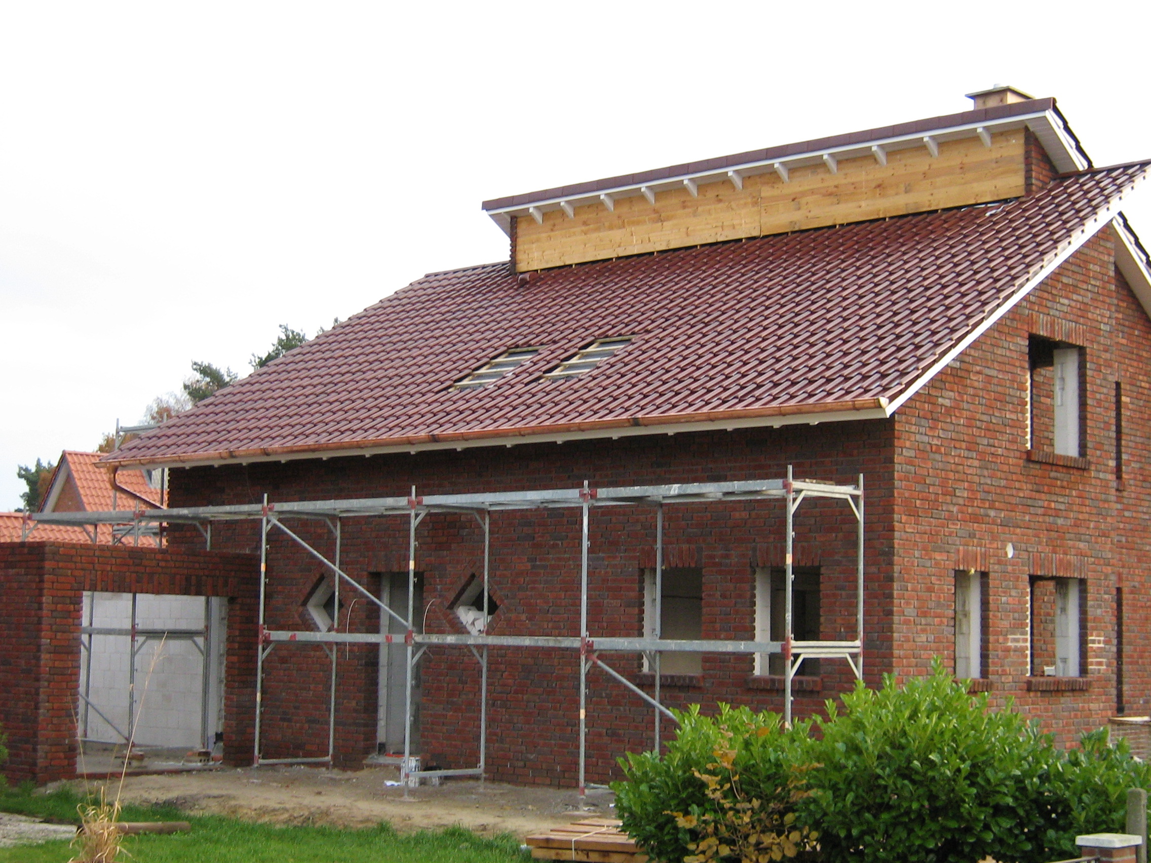 Auch der Maler rückte direkt nach Fertigstellung aller Holzarbeiten sofort an und so boten sich uns nur eine Woche nach der Verklinkerung folgende Bilder: