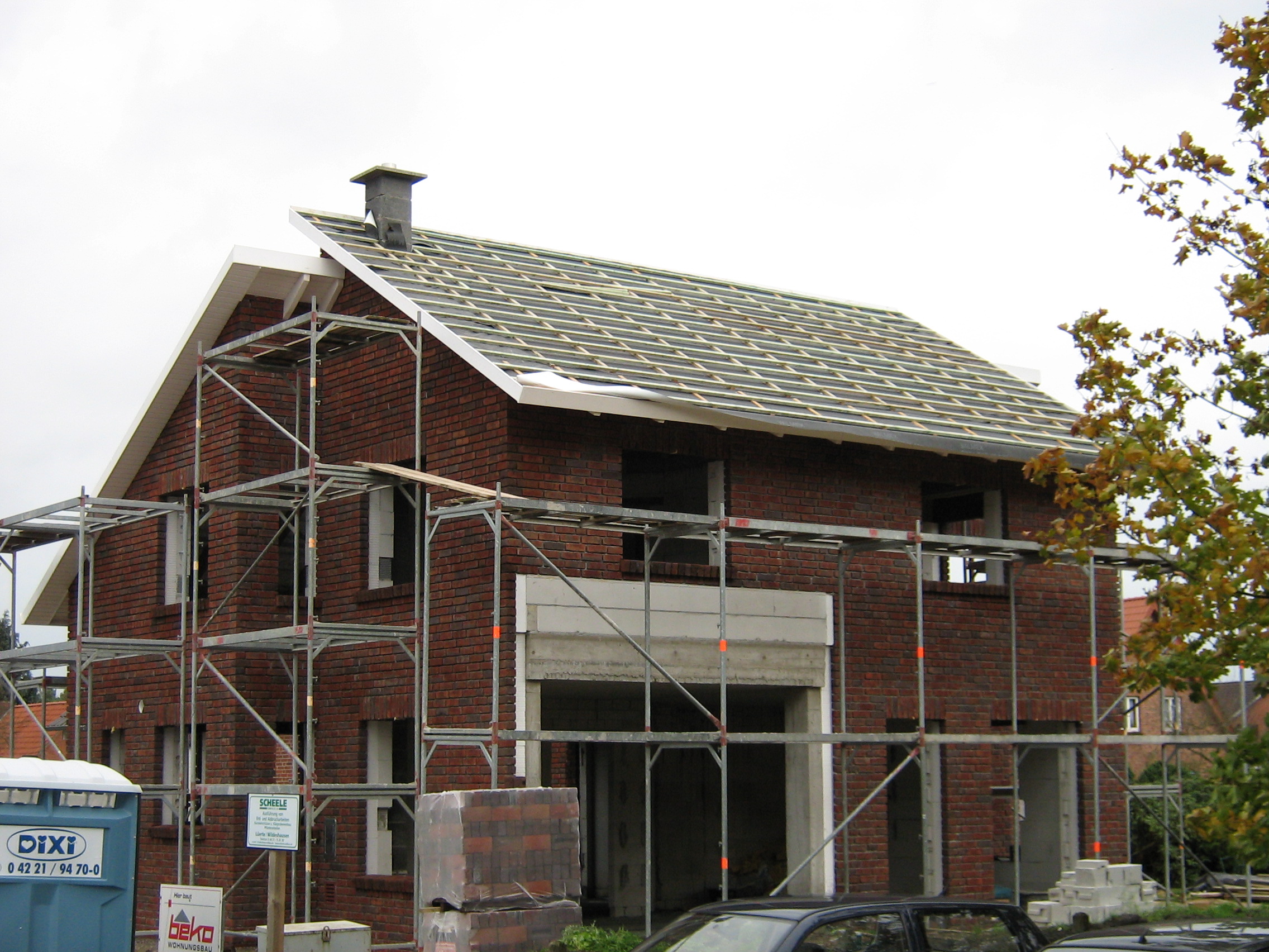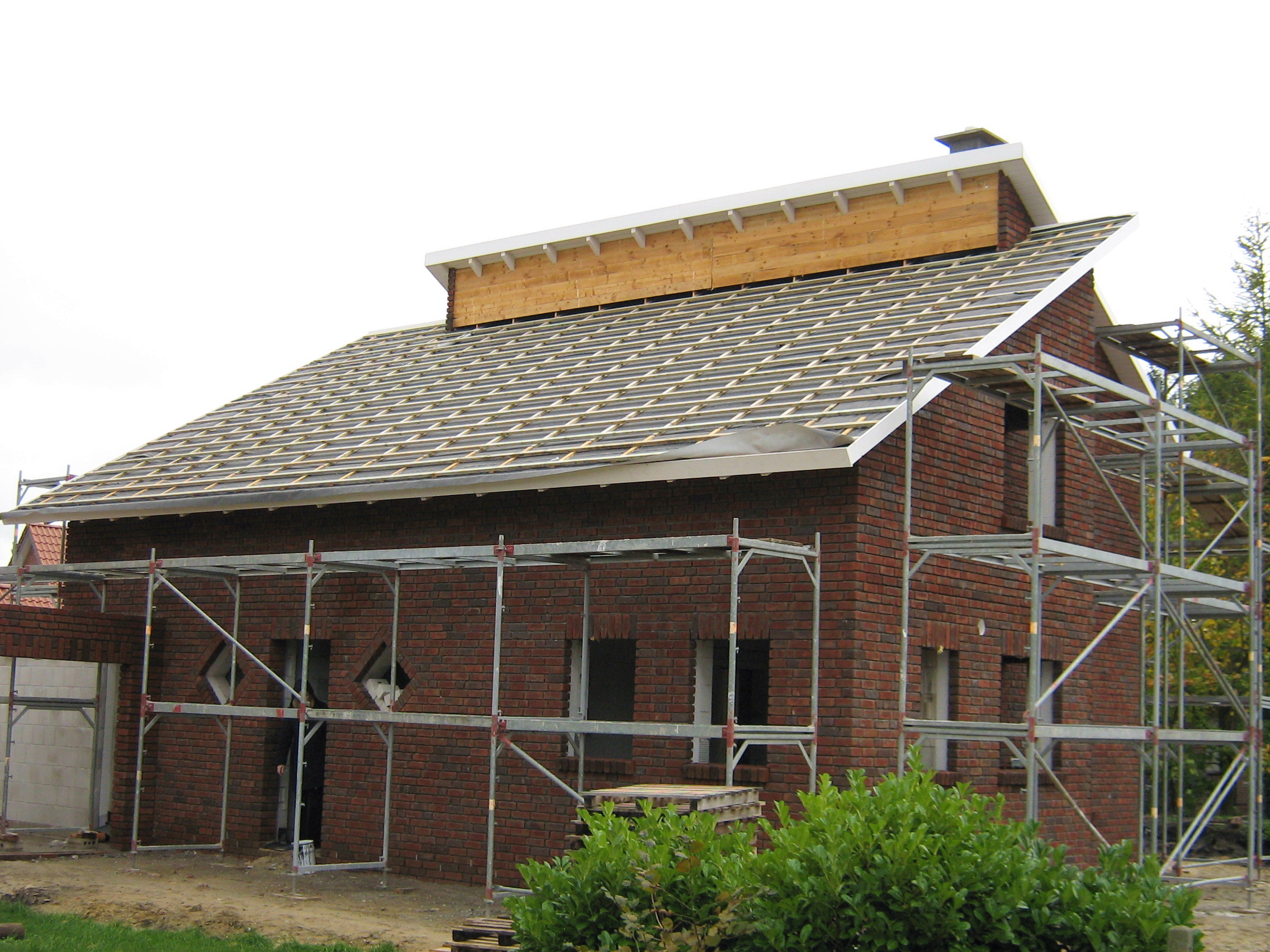 Eigentlich hätte dann ja auch direkt danach der Dachdecker weitermachen und das Dach decken können. Es gab da aber wohl mit dem ursprünglich von der Firma beko vorgesehenen Dachdeckerbetrieb einige "Schwierigkeiten" und so ließ das Dach noch auf sich warten. Erst Mitte November war es dann soweit.